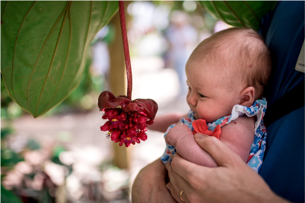 The two of us held a little ceremony in the forest, and laid our hopes and dreams for our first baby to rest in a grove of Medinilla. And now, there is a little spot on this earth infused with them, holding them. And there is a species of Medinilla holding a special place in our hearts too. In 2018, we introduced our 2 month-old daughter, Linden, to that same species in a botanical garden in Florida.